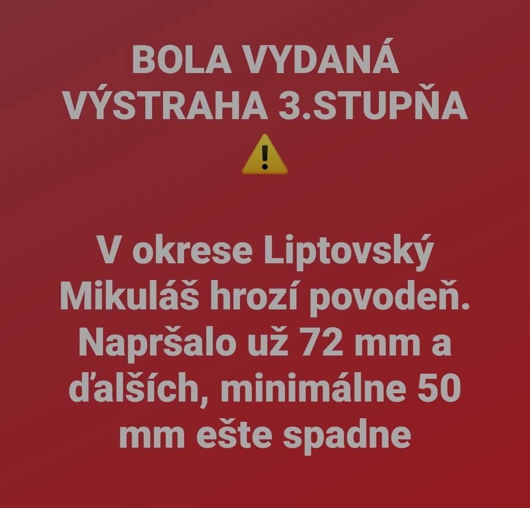 Vyzývame občanov na zvýšenú výstrahu 3. stupňa v okrese Liptovský Mikuláš.