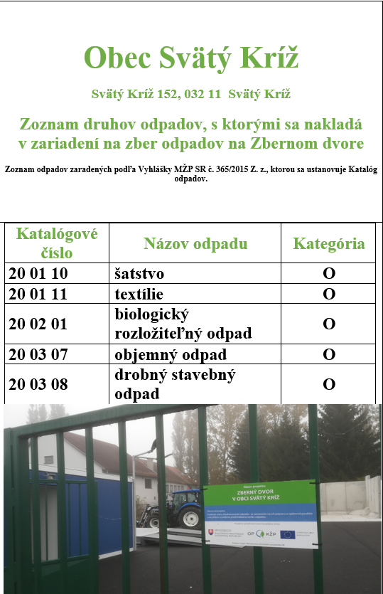 Informácia - Zberný dvor v obci Svätý Kríž